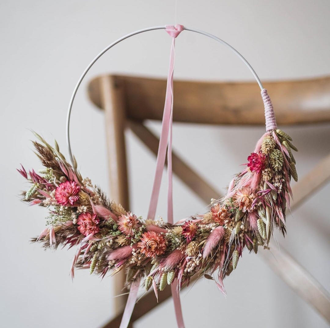 In diesem Workshop zeige ich euch, wie ihr dekorative Loops und Kränze mit frischem Grün oder trendigen Trockenblumen selbst kreieren könnt. Sie sind perfekte Hingucker an der Wand, im Fenster oder auch liegend auf jedem Tisch. Welche Farben und Materialien ihr verwenden möchtet ist natürlich ganz euch überlassen.