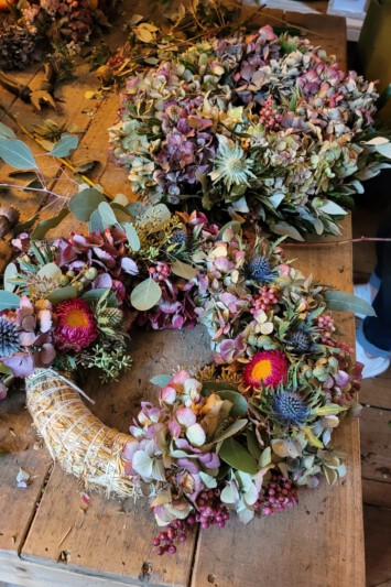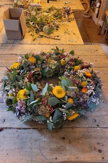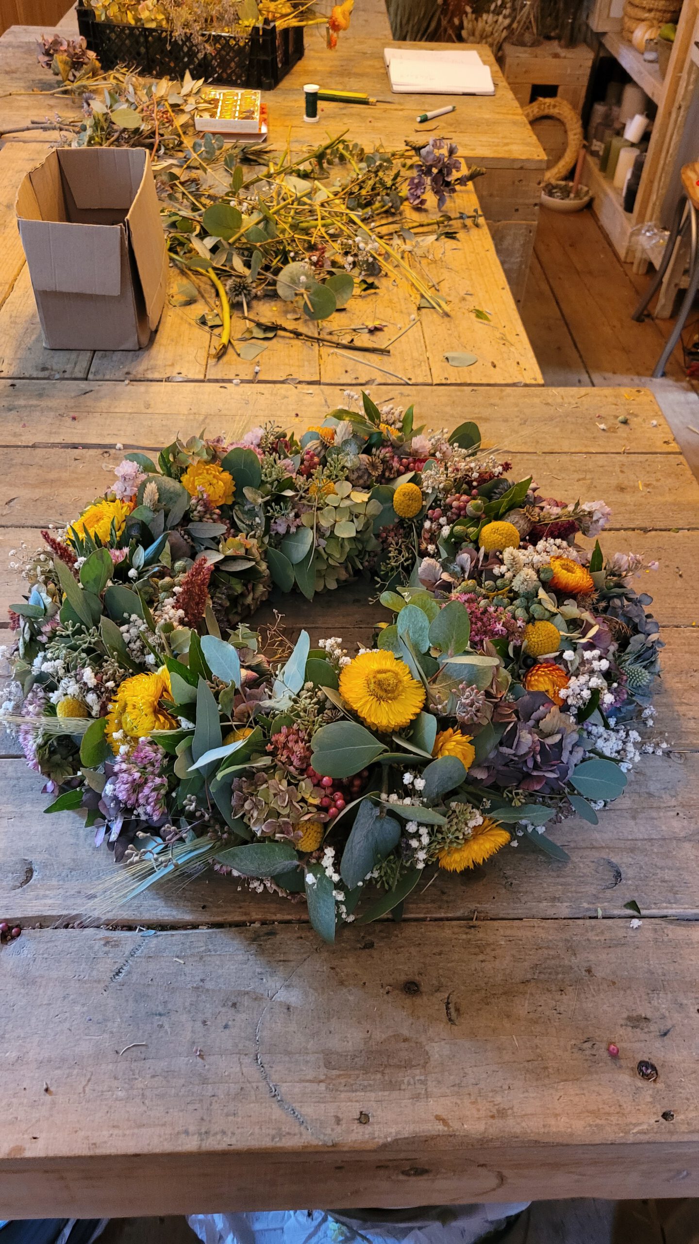 Materialien: In meiner Werkstatt stehen euch frische Blumen, Trockenblumen und Dekoelemente zur Verfügung.
