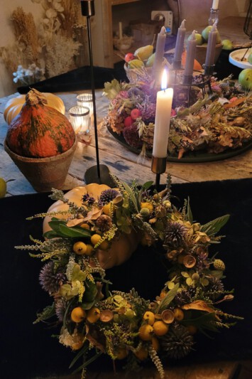 Seid kreativ, gönnt euch eine kleine Auszeit und gestaltet unter fachlicher Anleitung aus verschiedensten Naturmaterialien euren individuellen herbstlichen Lieblingskranz für Tisch oder Tür.